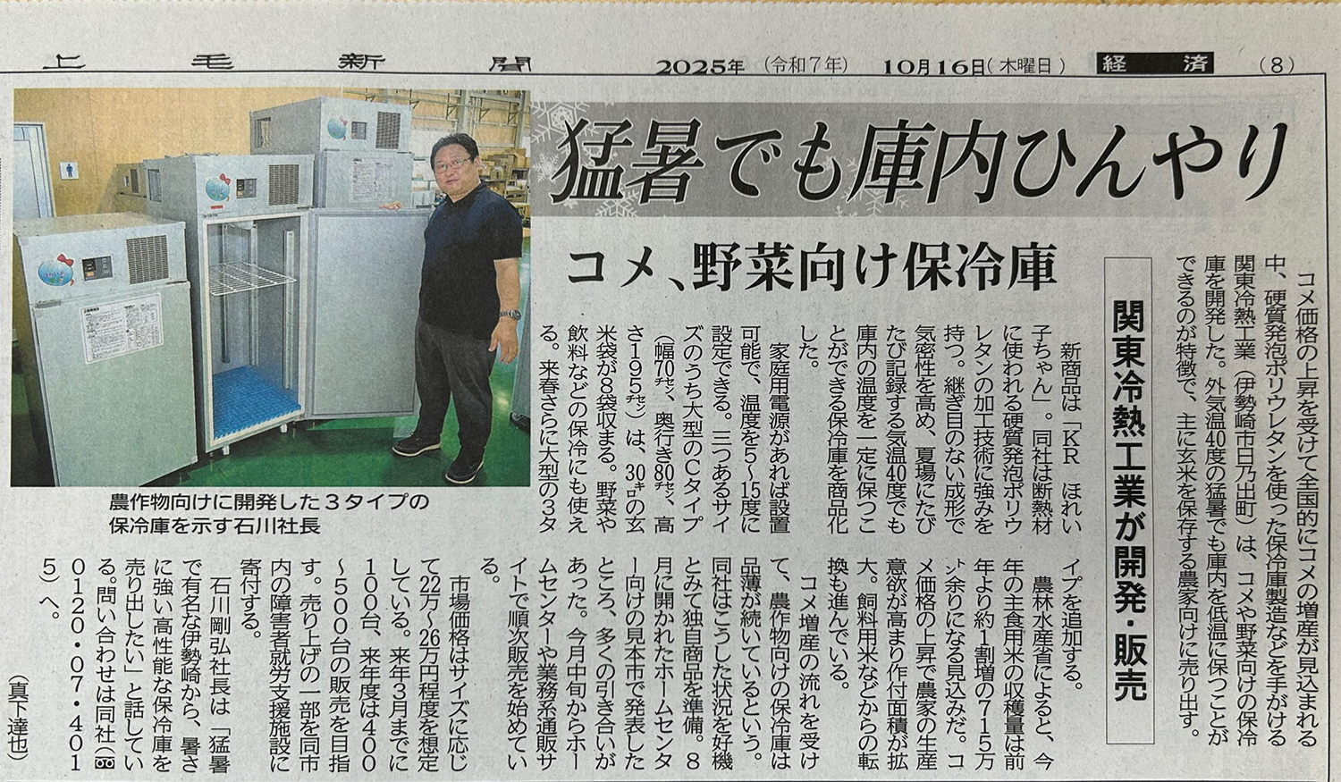 野菜、果物、玄米、食料、飲料など、安全、安心に冷やします。 夏場でも温度は一定。安心してどこでも設置できます。